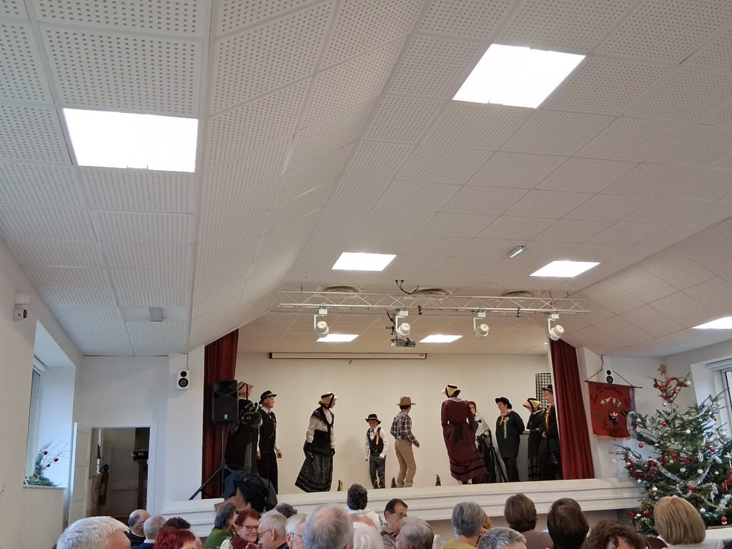 Ce repas s’est déroulé dans une ambiance festive grâce au groupe folklorique « La Bourrée des Agriers de Merlines » et leurs petites farces (ce qui nous a permis d’apprécier les qualités théâtrales de Manou).